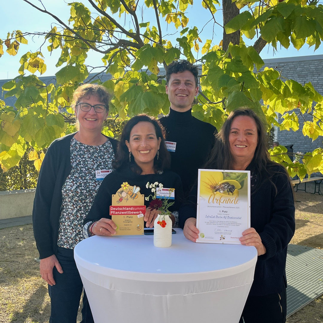 Für ihr Engagement zur Förderung urbaner Biodiversität wurde die AG Biodiversität des InfraLab Berlin im Rahmen des diesjährigen „Deutschland summt!“-Pflanzwettbewerbs mit dem 1. Platz in der Kategorie „Firmengärten“ ausgezeichnet. Der Preis wurde von der Stiftung für Mensch und Umwelt verliehen. Bewertet wurden unter anderem die ökologische Vielfalt der Maßnahme, die gestalterische Umsetzung, die Einbindung von Mitarbeitenden sowie Konzepte zur nachhaltigen Pflege.